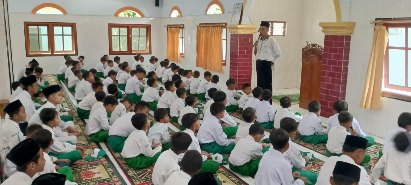 Anak-anak Madrasah Ibtidaiyah dengan penuh semangat belajar melaksanakan sholat dhuha bersama, dipandu oleh guru dengan sabar dan penuh kasih. Kegiatan ini tidak hanya mengajarkan tata cara ibadah, tetapi juga menanamkan kedisiplinan dan kecintaan kepada Allah sejak dini.